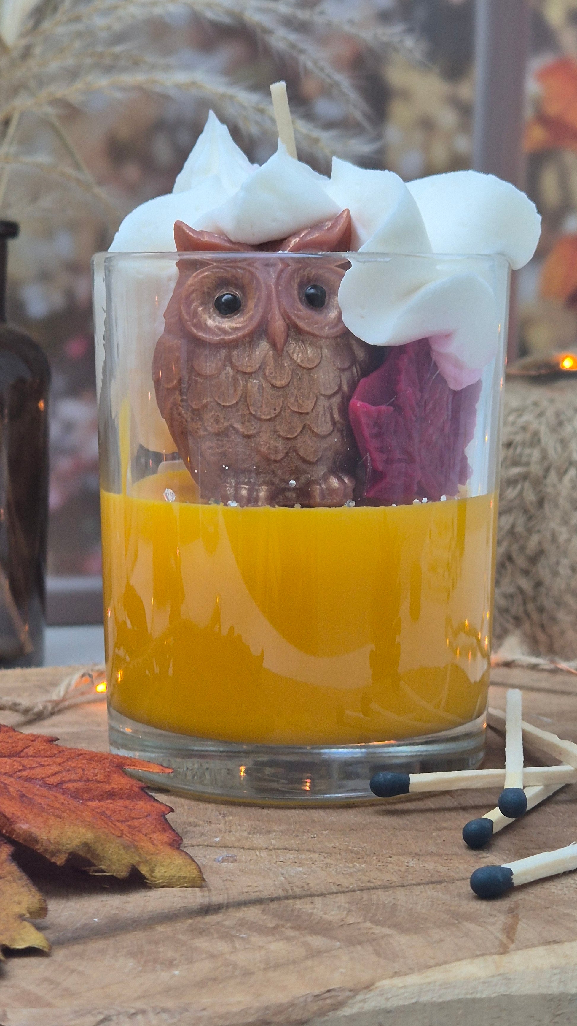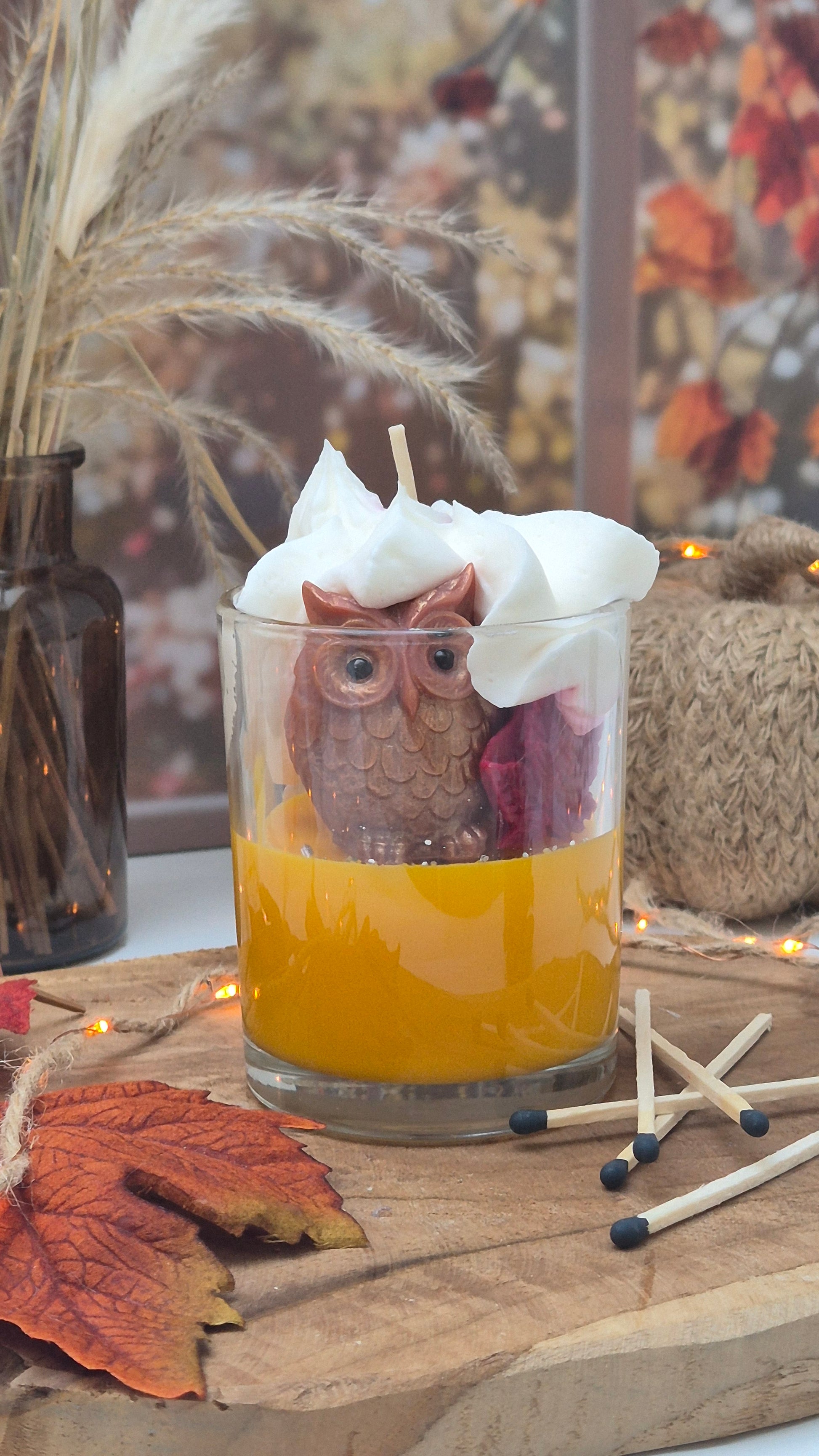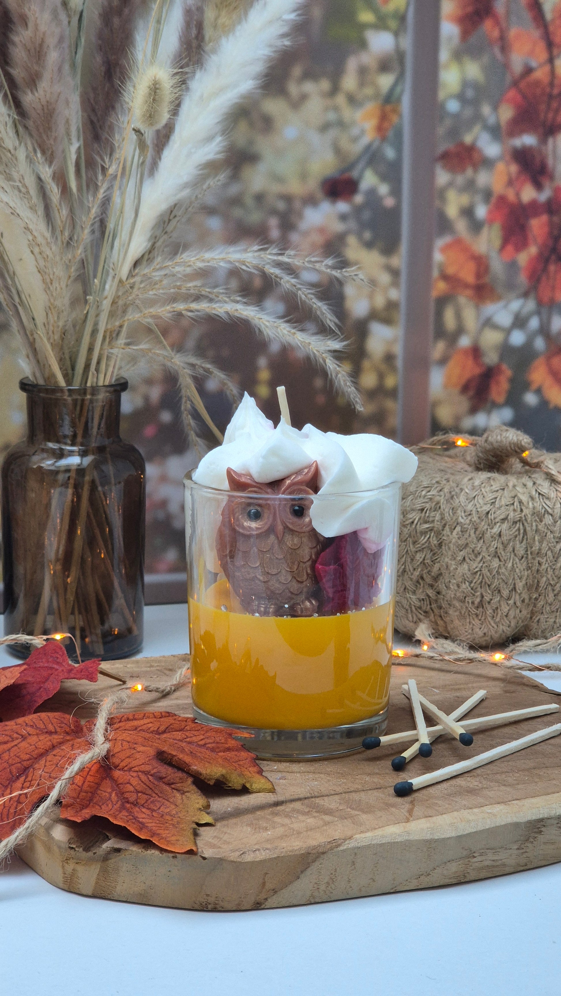 La bougie cinnamon roll offre une odeur délicieuse de cannelle, rappelant les plaisirs de la pâtisserie. Elle apporte une ambiance chaleureuse avec sa chouette recouverte de son manteau blanc entourée de feuilles d'érable scintillantes, assise sur son lit de paillettes. Faites-vous plaisir avec cette bougie au design unique et à la senteur irrésistible.