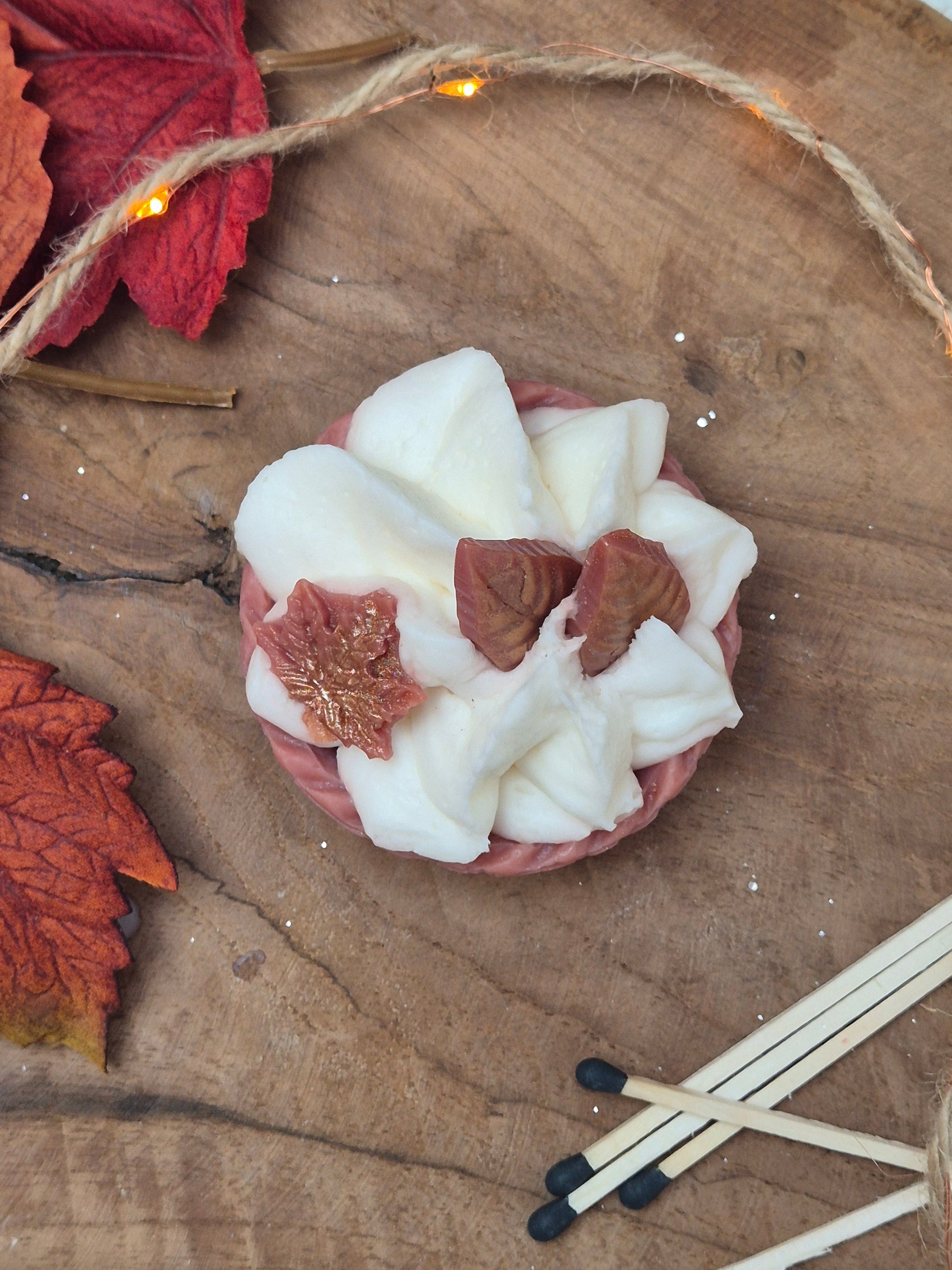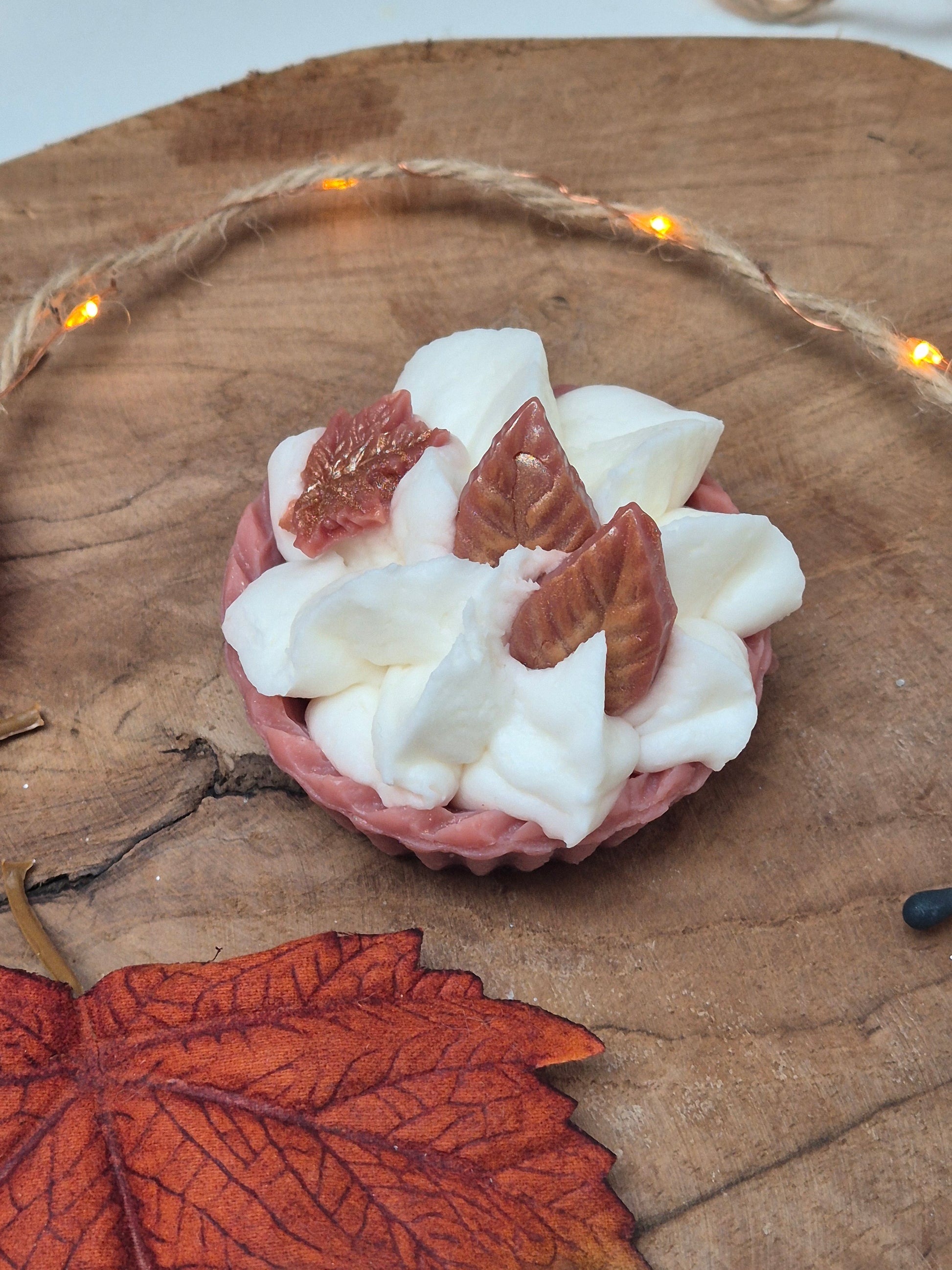 La tartelette sirop d'érable offre une odeur délicieuse de sirop de sucre de canne et de feuilles d’érable. Son design vous laisse paraître que c'est une vraie tartelette, mais ne vous y prenez pas ! C'est un fondant parfumé !